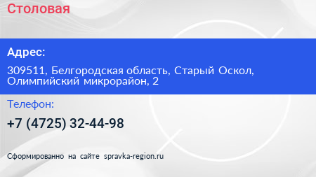 Столовая по адресу 309511, Белгородская область, Старый Оскол, Олимпийский микрорайон, 2 в дальнейшем Организация, размещена в следующих категориях: