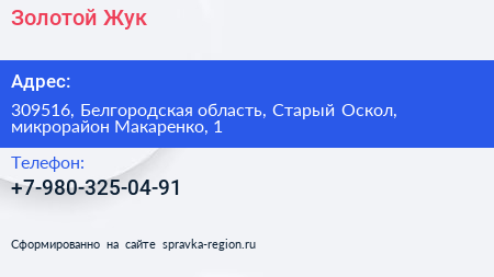 Золотой-Жук по адресу 309516, Белгородская область, Старый Оскол, микрорайон Макаренко, 1 в дальнейшем Организация, размещена в следующих категориях: