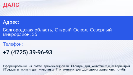ДАЛС по адресу Белгородская область, Старый Оскол, Северный микрорайон, 35 в дальнейшем Организация, размещена в следующих категориях: