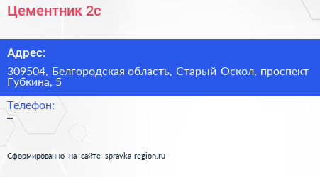 Цементник 2с по адресу 309504, Белгородская область, Старый Оскол, проспект Губкина, 5 в дальнейшем Организация, размещена в следующих категориях: