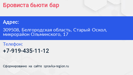 Бровиста, бьюти-бар по адресу 309508, Белгородская область, Старый Оскол, микрорайон Ольминского, 17 в дальнейшем Организация, размещена в следующих категориях: