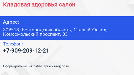 Кладовая здоровья, салон по адресу 309518, Белгородская область, Старый Оскол, Комсомольский проспект, 33 в дальнейшем Организация, размещена в следующих категориях: