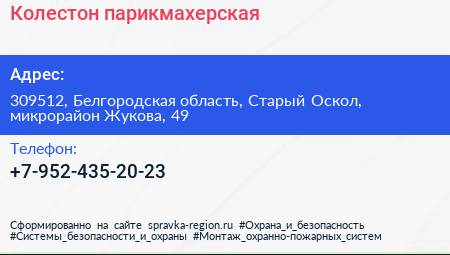 Колестон, парикмахерская по адресу 309512, Белгородская область, Старый Оскол, микрорайон Жукова, 49 в дальнейшем Организация, размещена в следующих категориях:
