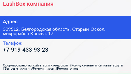 LashBox, компания по адресу 309512, Белгородская область, Старый Оскол, микрорайон Конева, 17 в дальнейшем Организация, размещена в следующих категориях: