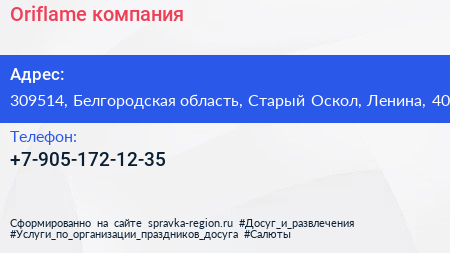 Oriflame, компания по адресу 309514, Белгородская область, Старый Оскол, Ленина, 40 в дальнейшем Организация, размещена в следующих категориях: