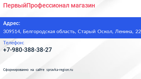 ПервыйПрофессионал, магазин по адресу 309514, Белгородская область, Старый Оскол, Ленина, 22 в дальнейшем Организация, размещена в следующих категориях: