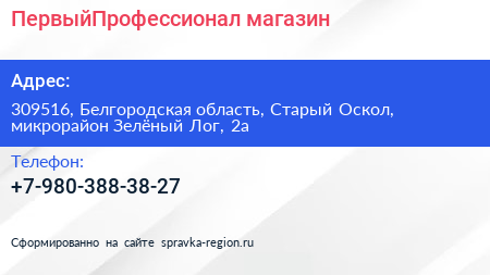 ПервыйПрофессионал, магазин по адресу 309516, Белгородская область, Старый Оскол, микрорайон Зелёный Лог, 2а в дальнейшем Организация, размещена в следующих категориях: