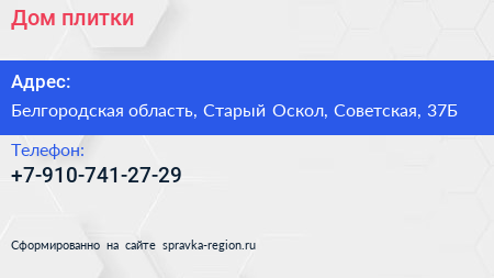 Дом плитки по адресу Белгородская область, Старый Оскол, Советская, 37Б в дальнейшем Организация, размещена в следующих категориях:
