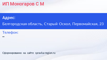 ИП Моногаров С.М. по адресу Белгородская область, Старый Оскол, Первомайская, 23 в дальнейшем Организация, размещена в следующих категориях: