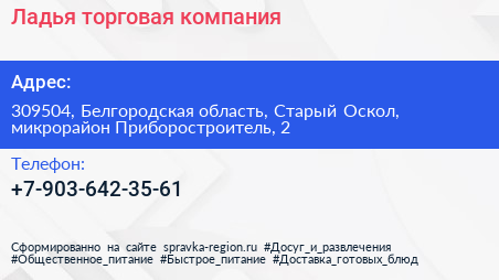 Ладья, торговая компания по адресу 309504, Белгородская область, Старый Оскол, микрорайон Приборостроитель, 2 в дальнейшем Организация, размещена в следующих категориях: