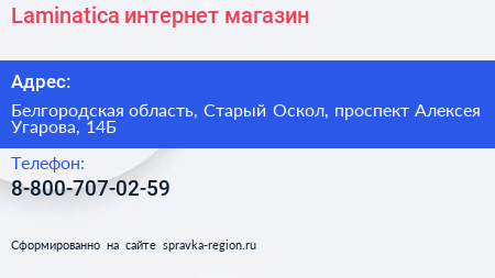 Laminatica, интернет-магазин по адресу Белгородская область, Старый Оскол, проспект Алексея Угарова, 14Б в дальнейшем Организация, размещена в следующих категориях: