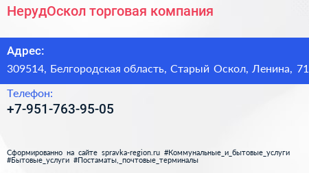 НерудОскол, торговая компания по адресу 309514, Белгородская область, Старый Оскол, Ленина, 71 в дальнейшем Организация, размещена в следующих категориях: