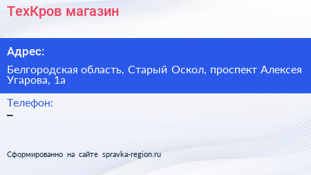 ТехКров, магазин по адресу Белгородская область, Старый Оскол, проспект Алексея Угарова, 1а в дальнейшем Организация, размещена в следующих категориях: