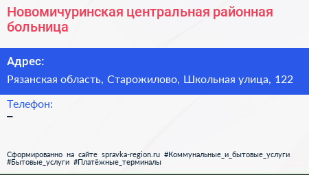 Новомичуринская центральная районная больница по адресу Рязанская область, Старожилово, Школьная улица, 122 в дальнейшем Организация, размещена в следующих категориях: