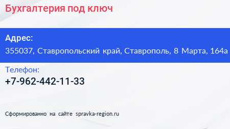 Бухгалтерия под ключ по адресу 355037, Ставропольский край, Ставрополь, 8 Марта, 164а в дальнейшем Организация, размещена в следующих категориях: