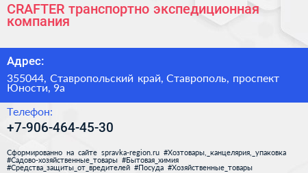 CRAFTER, транспортно-экспедиционная компания по адресу 355044, Ставропольский край, Ставрополь, проспект Юности, 9а в дальнейшем Организация, размещена в следующих категориях: