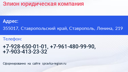 Элион, юридическая компания по адресу 355017, Ставропольский край, Ставрополь, Ленина, 219 в дальнейшем Организация, размещена в следующих категориях: