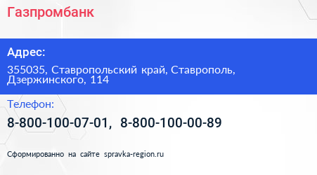 Газпромбанк по адресу 355035, Ставропольский край, Ставрополь, Дзержинского, 114 в дальнейшем Организация, размещена в следующих категориях: