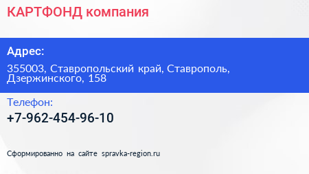 КАРТФОНД, компания по адресу 355003, Ставропольский край, Ставрополь, Дзержинского, 158 в дальнейшем Организация, размещена в следующих категориях: