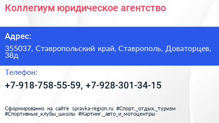 Коллегиум, юридическое агентство по адресу 355037, Ставропольский край, Ставрополь, Доваторцев, 38д в дальнейшем Организация, размещена в следующих категориях: