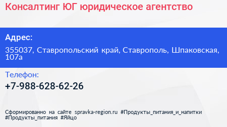 Консалтинг ЮГ, юридическое агентство по адресу 355037, Ставропольский край, Ставрополь, Шпаковская, 107а в дальнейшем Организация, размещена в следующих категориях: