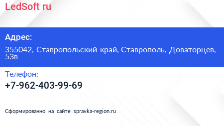 LedSoft.ru по адресу 355042, Ставропольский край, Ставрополь, Доваторцев, 53в в дальнейшем Организация, размещена в следующих категориях: