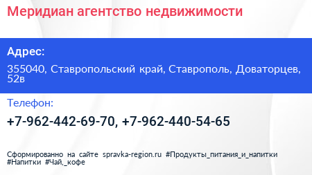 Меридиан, агентство недвижимости по адресу 355040, Ставропольский край, Ставрополь, Доваторцев, 52в в дальнейшем Организация, размещена в следующих категориях: