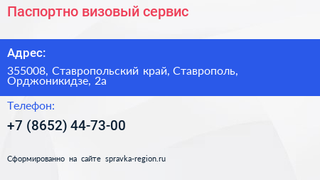 Паспортно-визовый сервис по адресу 355008, Ставропольский край, Ставрополь, Орджоникидзе, 2а в дальнейшем Организация, размещена в следующих категориях: