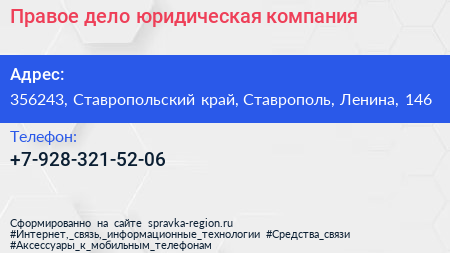 Правое дело, юридическая компания по адресу 356243, Ставропольский край, Ставрополь, Ленина, 146 в дальнейшем Организация, размещена в следующих категориях: