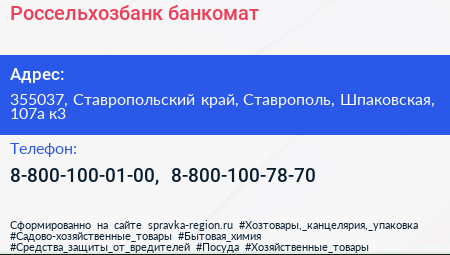 Россельхозбанк, банкомат по адресу 355037, Ставропольский край, Ставрополь, Шпаковская, 107а к3 в дальнейшем Организация, размещена в следующих категориях: