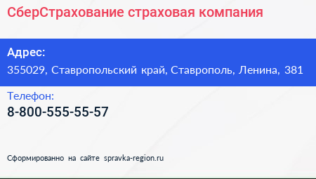 СберСтрахование, страховая компания по адресу 355029, Ставропольский край, Ставрополь, Ленина, 381 в дальнейшем Организация, размещена в следующих категориях: