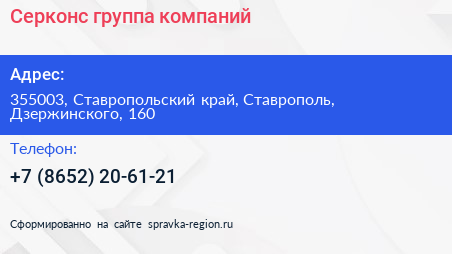 Серконс, группа компаний по адресу 355003, Ставропольский край, Ставрополь, Дзержинского, 160 в дальнейшем Организация, размещена в следующих категориях: