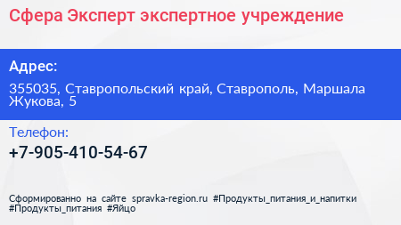 Сфера-Эксперт, экспертное учреждение по адресу 355035, Ставропольский край, Ставрополь, Маршала Жукова, 5 в дальнейшем Организация, размещена в следующих категориях: