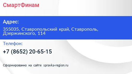 СмартФинам по адресу 355035, Ставропольский край, Ставрополь, Дзержинского, 114 в дальнейшем Организация, размещена в следующих категориях: