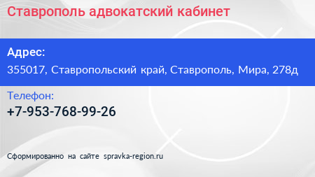 Ставрополь, адвокатский кабинет по адресу 355017, Ставропольский край, Ставрополь, Мира, 278д в дальнейшем Организация, размещена в следующих категориях: