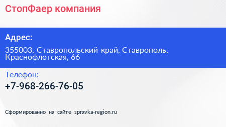 СтопФаер, компания по адресу 355003, Ставропольский край, Ставрополь, Краснофлотская, 66 в дальнейшем Организация, размещена в следующих категориях: