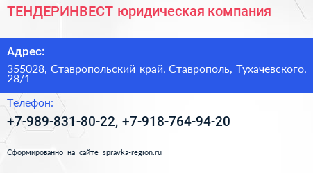 ТЕНДЕРИНВЕСТ, юридическая компания по адресу 355028, Ставропольский край, Ставрополь, Тухачевского, 28/1 в дальнейшем Организация, размещена в следующих категориях: