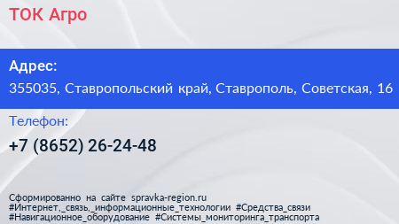 ТОК-Агро по адресу 355035, Ставропольский край, Ставрополь, Советская, 16 в дальнейшем Организация, размещена в следующих категориях: