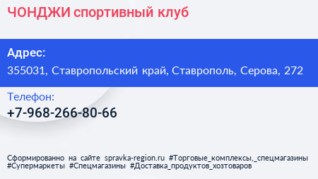 ЧОНДЖИ, спортивный клуб по адресу 355031, Ставропольский край, Ставрополь, Серова, 272 в дальнейшем Организация, размещена в следующих категориях: