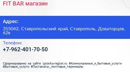 FIT BAR, магазин по адресу 355042, Ставропольский край, Ставрополь, Доваторцев, 62в в дальнейшем Организация, размещена в следующих категориях:
