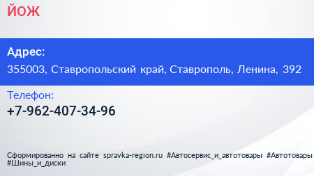 ЙОЖ по адресу 355003, Ставропольский край, Ставрополь, Ленина, 392 в дальнейшем Организация, размещена в следующих категориях: