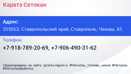 Каратэ Сетокан по адресу 355013, Ставропольский край, Ставрополь, Чехова, 65 в дальнейшем Организация, размещена в следующих категориях: