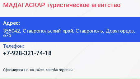 МАДАГАСКАР, туристическое агентство по адресу 355042, Ставропольский край, Ставрополь, Доваторцев, 67а в дальнейшем Организация, размещена в следующих категориях: