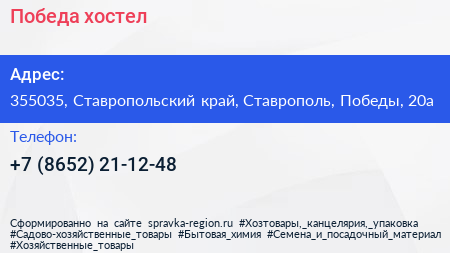 Победа, хостел по адресу 355035, Ставропольский край, Ставрополь, Победы, 20а в дальнейшем Организация, размещена в следующих категориях: