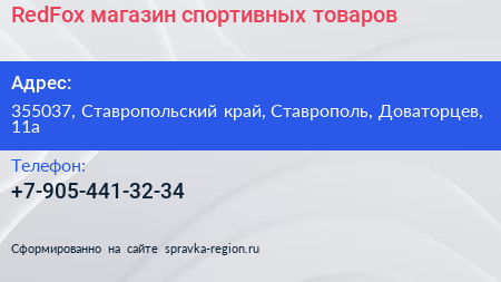 RedFox, магазин спортивных товаров по адресу 355037, Ставропольский край, Ставрополь, Доваторцев, 11а в дальнейшем Организация, размещена в следующих категориях: