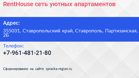 RentHouse, сеть уютных апартаментов по адресу 355031, Ставропольский край, Ставрополь, Партизанская, 2Б в дальнейшем Организация, размещена в следующих категориях: