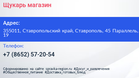 Щукарь, магазин по адресу 355011, Ставропольский край, Ставрополь, 45 Параллель, 19 в дальнейшем Организация, размещена в следующих категориях: