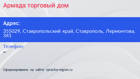 Армада, торговый дом по адресу 355029, Ставропольский край, Ставрополь, Лермонтова, 341 в дальнейшем Организация, размещена в следующих категориях: