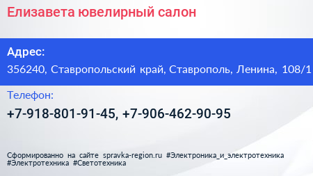 Елизавета, ювелирный салон по адресу 356240, Ставропольский край, Ставрополь, Ленина, 108/1 в дальнейшем Организация, размещена в следующих категориях: