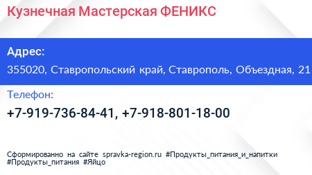 Кузнечная Мастерская ФЕНИКС по адресу 355020, Ставропольский край, Ставрополь, Объездная, 21 в дальнейшем Организация, размещена в следующих категориях: